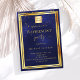 Celebrate the special milestone with this elegant retirement party invitation. Featuring a rich navy blue background with an uneven texture, this design is highlighted by a faux gold frame and sparkling golden confetti sprinkles. The golden-coloured lettering adds a touch of sophistication, making it perfect for the occasion. Personalise it by adding your business logo, the retiree's name and all your party details to create a truly unique invitation. Available in various paper types and formats, this invitation sets the tone for a memorable celebration.