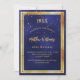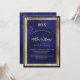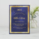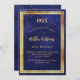 A dark blue, navy blue background. The blue colour is uneven. With a faux gold frame and golden confetti sprinkle, golden coloured letters. Personalise and add year of birth, name, party details.