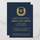 Celebrate your achievement with our Navy Blue Gold Crest Monogram Graduation Party Invitation. This elegant design features a striking navy blue background complemented by a luxurious gold crest monogram. The rich colours and sophisticated details create a classy and memorable invitation for your graduation party. With space to include all the essential event details, this invitation is the perfect way to invite your loved ones to join you in celebrating this special milestone. Make your graduation unforgettable with this chic design.