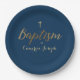 Navy Blue Gold Cross Custom Baby boy Baptism Paper Plate