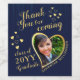 Create unique navy blue and gold Thank You bottle labels for the 2025 Graduation party or for favors with an elegant design that features a heart shaped photo, the Graduate's name, and year. Use the template to type your Grad's name and year and upload a picture.