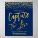 Navy Blue Gold Faux Glitter Wedding Hashtag Sign