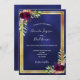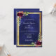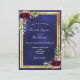 Navy blue gold floral burgundy wedding invitation