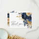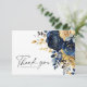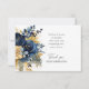 This modern and elegant Navy Blue Gold Floral Wedding Thank You Card features exquisite, eye-catching florals, combining the timeless charm of navy blue and the opulence of gold. Coupled with beautiful script typography, the delicate botanical accents and intricate detailing of the flowers add a unique touch to your heartfelt message. With a rustic yet chic appeal, this card is perfect for couples seeking a contemporary and trendy twist on traditional wedding thank you notes. The bohemian-inspired design exudes nature's beauty, infusing your gratitude with a touch of whimsy. This stylish and romantic card beautifully complements any wedding theme, including boho wedding, winter wedding, summer wedding, fall wedding, navy blue wedding, spring wedding, and more. Customise the text size, colours, font styles, and placement to your liking using the design tool.