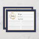 Navy Blue Gold Foliage Monogram Recipe Card