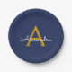 Navy Blue Gold Girly Script Monogram Name Modern Paper Plate