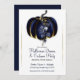 Navy Blue Gold Glam Pumpkin Halloween Dinner Party Invitation