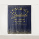 An elegant graduation photo booth backdrop featuring your grad's details set in chic typography on a navy blue and gold glitter background. Designed by Thisisnotme©