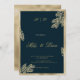 Navy blue gold glitter leaf floral Wedding Invitation