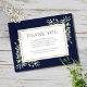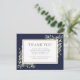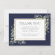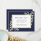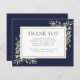 An elegant funeral memorial card featuring botanical watercolor greenery foliage on a navy blue background. You can personalise with your own thank you message. Designed by Thisisnotme©