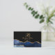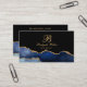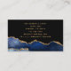 A unique version of an abstract navy blue black and gold foil agate geode hair stylist business cards featuring an elegant script script signature monogram.