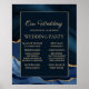 Elegant and sophisticated navy blue and gold marble agate wedding party sign. Add the names of your officant along with your maid-of-honour, best man, bridesmaids and groomsmen, flower girl and ring bearer.