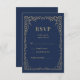 Invite guests to respond with this minimalist navy blue and gold wedding RSVP card. The clean layout pairs deep navy tones with refined gold accents for a polished and modern look. Designed for clear readability and a smooth, print ready finish that complements any elegant wedding theme.
