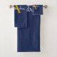 Navy Blue Gold Modern Script Girly Monogram Name Bath Towel Set