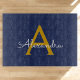 Navy Blue Gold Modern Script Girly Monogram Name Cutting Board
