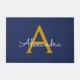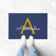 Navy Blue Gold Modern Script Girly Monogram Name Doormat