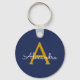 Navy Blue Gold Modern Script Girly Monogram Name Key Ring