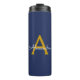 Navy Blue Gold Modern Script Girly Monogram Name Thermal Tumbler