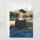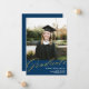 Navy Blue Gold Modern Script | Graduation Photo Announcement
