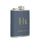 Navy Blue Gold Monogram Elegant Personalised Hip Flask