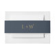 Navy Blue Gold Monogram Initials Simple Invitation Belly Band