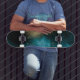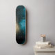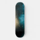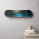 Navy blue and gold faux foil sprinkles creating a nebula with an elegant vertical monogram on the bottom of the skateboard.