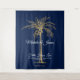 Navy Blue Gold Palm Tree Beach Wedding Backdrop Tapestry