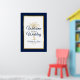 Customise this navy blue and gold "Welcome to our Wedding" sign with your own special touch. This modern design features modern script, navy blue and gold text including the bride and groom's names and wedding date, an artistic palm tree and metallic gold foil frame with a navy blue border. If you need help or matching items, please contact me.