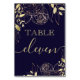 Navy Blue & Gold Peony Modern Floral Wedding Table Number