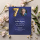A modern, minimalist photo invitation for a 70th birthday party. A navy blue uneven coloured background. Personalise and add a photo and party details.