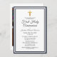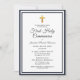 Honour this sacred occasion with a Navy Blue Gold Photo First Holy Communion Invitation that beautifully blends faith and elegance. Featuring a deep navy background with shimmering gold details, this invitation allows you to include a cherished photo of the communicant, making it a treasured keepsake. A perfect way to invite family and friends to celebrate this milestone.