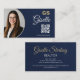 Navy Blue Gold Photo Realtor QR Code Linen Business Card