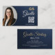 Navy Blue Gold Photo Realtor QR Code Metallic Business Card