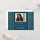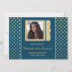 An elegant photo announcement or invitation for the graduate with gold polka dot pattern on navy blue background and modern frame with gold "graduate" lettering. Just upload your own image and customise the text for your special graduate. Can be customised for a party or open house invitation by adding the event details to the back or used as a photo announcement.