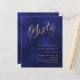 A modern, stylish invitation for a 60th birthday party. A navy blue, uneven coloured background and the word Sixty written with elegant large script letters in faux gold. Personalise and add a name and party details.