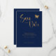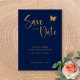 Navy Blue & Gold Script: Glitter Butterfly Wedding Save The Date