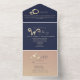 Navy Blue Gold Script Photo Wedding All In One Invitation