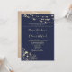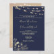 Elegant, modern, rustic, chic, formal navy blue wedding invitation with gold gilded floral lace and string lights.