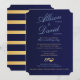 Navy Blue Gold Stripes Modern Wedding Invitation