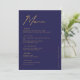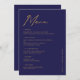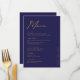 Looking for a wedding table menu? Introducing our stunning Navy Blue Gold Typography Wedding Table Menu! This simple wedding menu exudes timeless sophistication with its elegant modern typography and sleek, minimalist design. It's the perfect choice for couples seeking understated yet stylish wedding invitations that capture the essence of an elegant modern wedding theme.