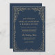 Navy Blue Gold Victorian Elegant Wedding Invitation
