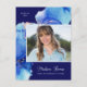 This pretty watercolor graduation announcement features a large photo framed by blue and gold watercolors against a navy blue background. Below the photo, the graduate's name is written in modern calligraphy script. On the back, you can add grad party details and a custom message to recipients.