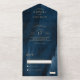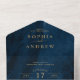 Navy Blue Agat & Gold Calligraphy Wedding All in One Invitations are designed with an easy to tear off perforated RSVP postcard. Just simply fold each card into the outlined shape, and then seal and send - no envelope needed for shipping. For further customisation, please click the "customise further" link and use our design tool to modify this template. If you need help or matching items, please contact me.