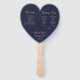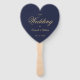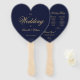 Navy Blue Golden Calligraphy Heart Wedding Program Hand Fan