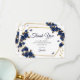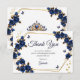 Navy Blue Golden Tiara Roses Butterfly Quinceañera Thank You Card