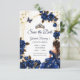 Navy Blue Golden Tiara Roses Quinceañera Save The Date