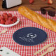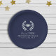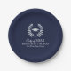 A custom graduation navy blue party paper plate, Celebrate in classic style, and your school colours, with a simple name template, and the graduate class of (year), Perfect for any high school grad party, or college, with a simple and minimalist laurel leaf design, an elegant graduation party supplies