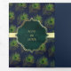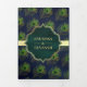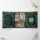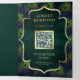 Navy Blue Green Peacock Feathers QR Code Wedding Tri-Fold Invitation