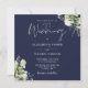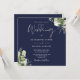 Navy Blue Greenery Floral Monogram Square Wedding Invitation