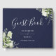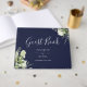 Navy Blue Greenery Floral Photo Wedding Guest Book